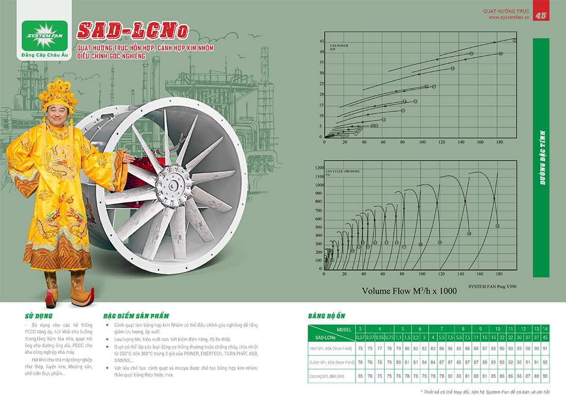 Quạt SAD-LCNo là dòng quạt hướng trục trực tiếp hỗn hợp được sản xuất bởi System Fan với những đặc điểm cơ bản như sau: