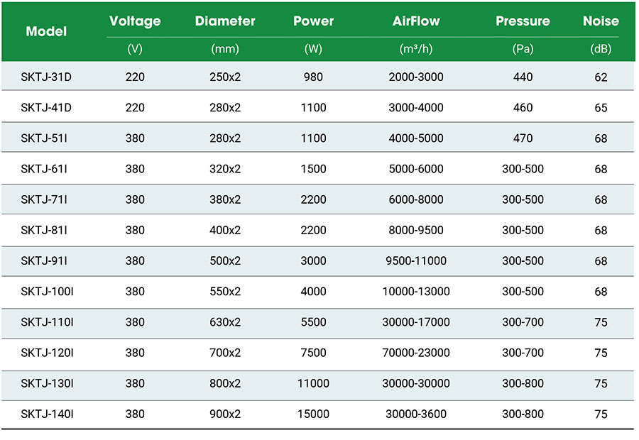 Quạt nối ống SKTJ được sản xuất bởi System Fan với thông số kỹ thuật như hình dưới đây: