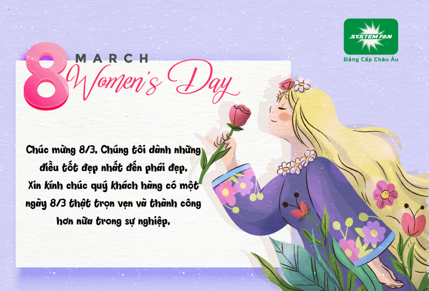 Chúc cho những người phụ nữ tuyệt vời giỏi việc nước, đảm việc nhà của System Fan luôn luôn xinh đẹp, tươi trẻ, luôn luôn hạnh phúc và nhận được thật nhiều yêu thương. Nhân đây, System Fan Global cũng xin gửi tới quý khách hàng, quý đối tác lời chúc thân thương nhất. Chúc cho tất cả những người phụ nữ luôn luôn hạnh phúc và xinh đẹp.