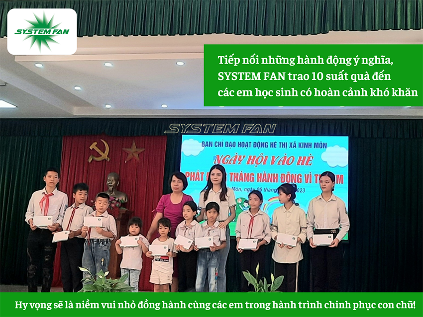 Hành trình lan toả yêu thương của System Fan sẽ không ngừng lại với tinh thần "Lá lành đùm lá rách, lá rách đùm lá rách hơn". Vào ngày 6/6, Góp mặt cùng với BCĐ Hoạt động hè thị xã Kinh Môn với chương trình Ngày Hội vào hè. System Fan trao 10 suất quà nhỏ - ý nghĩa to đến với 10 em nhỏ có hoàn cảnh khó khăn. Hi vọng với chút quà mang cả tấm lòng và niềm hi vọng tới với các thế hệ tương lai của đất nước, các em sẽ có một mùa hè thật ý nghĩa như bao bạn bè cùng trang lứa.