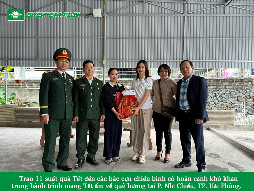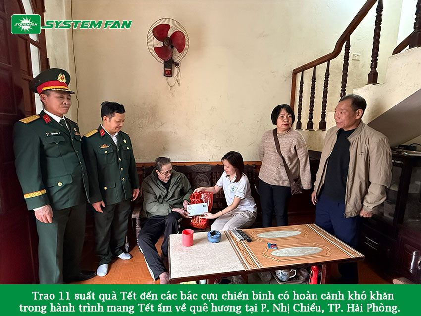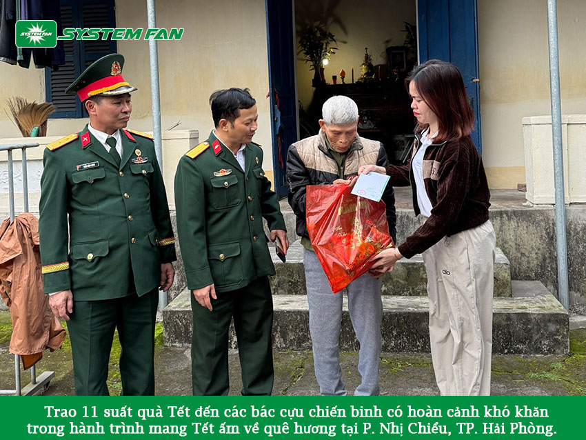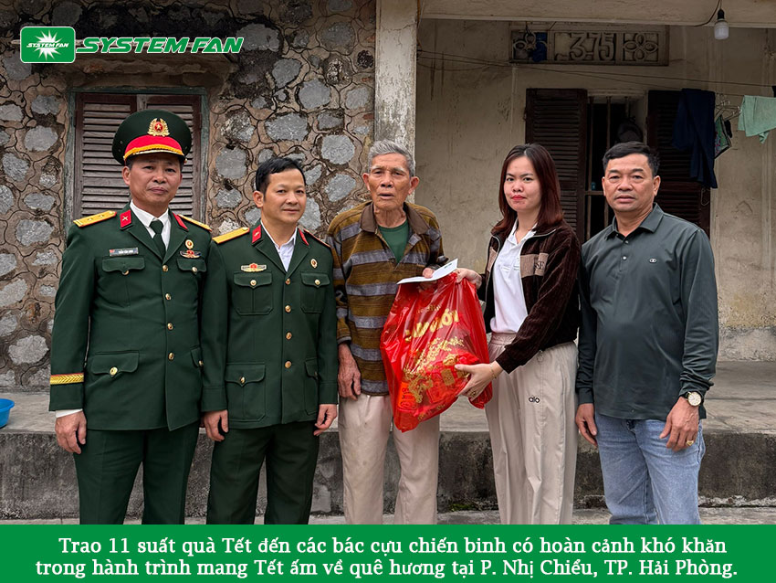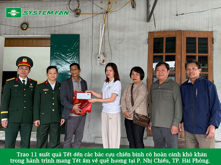 Trong hành trình mang Tết ấm về quê hương, System Fan đã trao tặng 11 suất quà Tết đến các bác cựu chiến binh có hoàn cảnh khó khăn tại phường Nhị Chiểu, TP. Hải Phòng. Đây là hoạt động ý nghĩa được tổ chức nhân dịp xuân về, thể hiện tinh thần tri ân sâu sắc và đạo lý “uống nước nhớ nguồn” mà doanh nghiệp luôn gìn giữ.