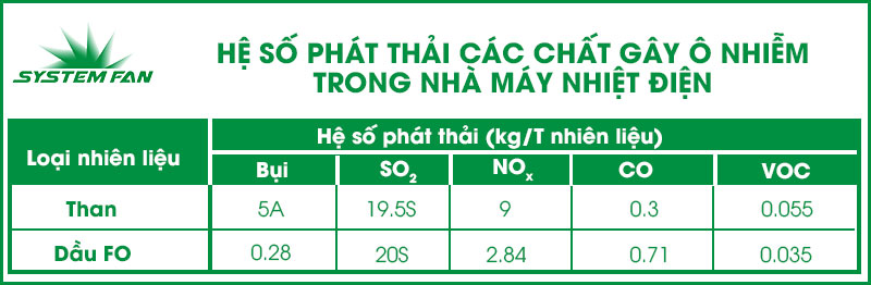 Hệ số phát thải các chất gây ô nhiễm trong nhà máy nhiệt điện